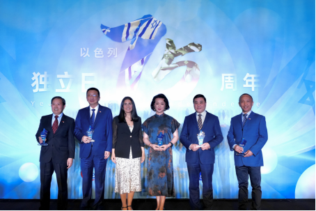 活動現場,上海兒童醫學中心SDR手術中心主任肖波獲得“促進中以醫療技術交流”杰出貢獻獎,上海猶太難民紀念館館長陳儉獲得“致力于上海猶太歷史保護”杰出貢獻獎,上海金星舞蹈團藝術總監金星獲得“促進中以藝術文化交流”杰出貢獻獎,上海鉆石交易所總裁林強獲得“促進中以商貿與文化交流”杰出貢獻獎,南京大學猶太文化研究所所長徐新獲得“致力于猶太文化研究與中以教育交流”杰出貢獻獎,白樂濰為獲獎嘉賓頒獎。這也是以色列總領事館建館以來,首次向中國人授予此榮譽。