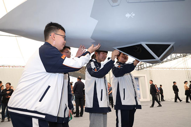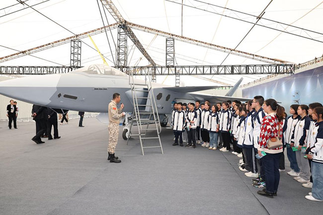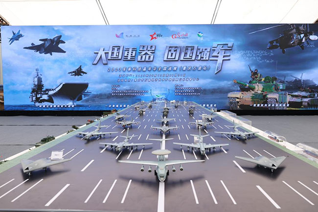 輝煌歷程展區以時間主線,將我國軍事科技領域的重要任務和重大事件,形成時空長廊,再現“大閱兵”的恢宏場景;陸戰驕子展區則是展示陸軍現代化建設成果的重要展區,各型1:1比例的裝備模型,讓人們深刻體會到中國陸軍裝備的壯大;劍指深藍展區聚焦海軍強大艦艇裝備,各型號軍艦和先進武器系統的展示讓人們感受到海軍走向深藍的勇氣;藍天利刃展區則展示空軍先進武器和戰機,各型號戰機和導彈的專業介紹讓人們體驗到空軍的迅猛發展;鳴嘯長空展區則是以“兩彈一星”為主力展品,并結合導彈發射車、空天一體打擊體系等內容,展示我國戰略打擊力量;深空探秘展區則是展示我國太空事業發展成果的重要展區,各類衛星、火箭、空間站的展示,讓人們感受到中國太空事業的高速發展。