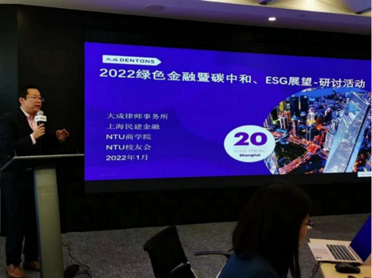2022年1月15日,大成(上海)律師事務(wù)所聯(lián)合中金財富、民建上海金融工委、NTU商學(xué)院校友,共同舉辦“2022綠色金融暨碳中和、ESG展望研討活動”。