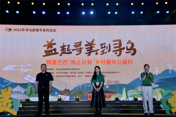 客家韻、紅土風、東江源、橘鄉情,尋烏不尋常!11月21日晚,2022年尋烏臍橙節系列活動之阿里巴巴“熱土計劃”鄉村振興公益行—益起尋美到尋烏系列活動,在江西省尋烏縣客家小鎮音樂噴泉廣場盛大舉行。本次活動由農業農村部市場與信息化司指導,中共尋烏縣委、尋烏縣人民政府、阿里巴巴公益、中國農業電影電視中心主辦;阿里巴巴鄉村振興基金、盒馬、飛豬旅行、《鄉約》欄目共同承辦。