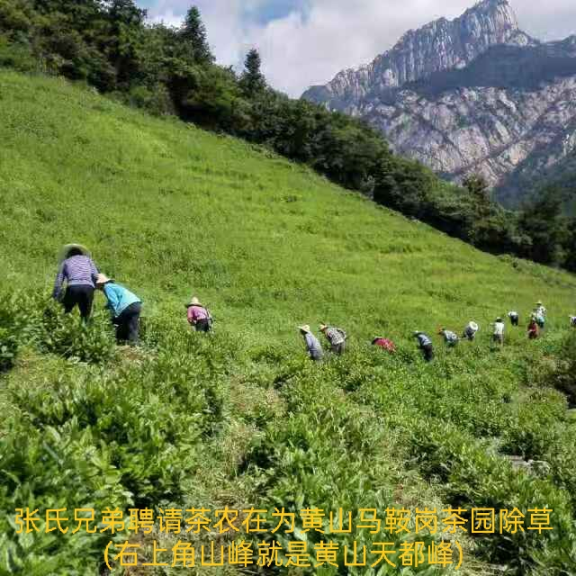 精神抖擻的張建洪和身材魁梧張建軍與我聊得非常投機(jī),對(duì)于制茶,他倆如數(shù)家珍,娓娓道來(lái),我是聽(tīng)得津津有味,興致超然:黃山毛峰生長(zhǎng)在北緯30°08的位置,此區(qū)域地質(zhì)地貌、物種礦藏、水文氣候等復(fù)雜多樣,地球上神秘現(xiàn)象也比較集中,自然和人文景觀更加密集。位于亞熱帶和溫帶的過(guò)度地帶,降水相對(duì)比較豐沛,植物茂盛。黃山地區(qū),由于山高,土質(zhì)好,溫暖濕潤(rùn),“晴時(shí)早晚遍地霧,陰雨成天滿(mǎn)山云”,云霧縹緲,很適合茶樹(shù)生長(zhǎng),因而葉肥汁多,經(jīng)久耐泡;加上黃山遍生蘭花,采茶之際,正值山花爛漫,花香的熏染,使黃山茶葉格外清香,風(fēng)味獨(dú)具,而且產(chǎn)茶歷史悠久。他倆利用這得天獨(dú)厚的地理優(yōu)勢(shì)——黃山景區(qū)天都峰前山的馬鞍崗茶園,歷史上曾稱(chēng)之為黃山毛峰“四大名家”之一。此茶園海拔600-800米,氣候溫涼、雨量充沛、土染深厚肥沃,有機(jī)質(zhì)含量高,遠(yuǎn)離工業(yè)污染,空氣清新,水質(zhì)潔凈,非常適合開(kāi)發(fā)名優(yōu)茶。采自此正宗高山的生態(tài)綠茶,香溢、味醇、形美、耐沖泡,含有豐富的營(yíng)養(yǎng)成分及微量元素;馬鞍崗高山茶更具有生津止渴、提神醒腦、美容養(yǎng)顏、明目、清熱等解毒之功效,是名副其實(shí)的綠色食品茶。