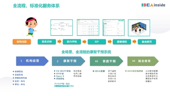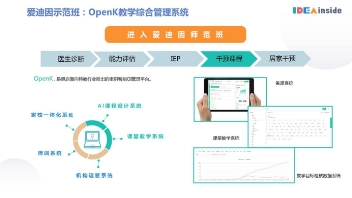 只需一間20平米的示范教室,運用標準化的服務方案,就可以把深耕行業多年沉淀的IDEA教學模式帶回機構/學校/幼兒園/醫療單位,進行數字化、標準化的康復干預。一個標準的、數字化管理的愛迪因教學示范教室,可以復制到任何一個線下中心,開展專業兒童康復干預。