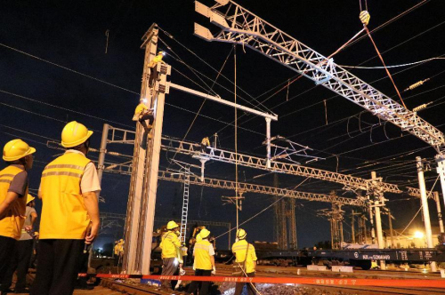 海口站是連接環島高鐵東西段、西環貨線和過海列車的樞紐車站,日常維修天窗時間只有60-120分鐘,施工天窗也在180分鐘內,對于更換跨越7條承導線索的硬橫梁是個不小的挑戰,該段周密部署,從9月15日就進入了緊張的更換海口站硬橫梁的過渡施工天窗作業中。