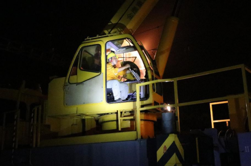 2022年9月22日凌晨0點33分,一聲“開工作業”嘹亮的口號劃破了海口寂靜的夜空,作業人員根據分工有條不絮的開始忙碌起來。1點35分隨著吊車吊臂平穩落下,一組長23.03米的橫梁穩穩的落在鋼柱上,作業人員迅速對位、連接、緊固、落臂……熟練的操作一氣呵成,順利精準完成了海南環島高鐵首次硬橫梁更換作業。