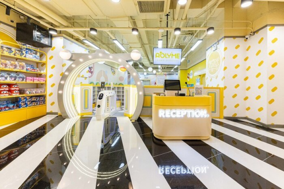 店面依舊是以黃色為主色調(diào),但色調(diào)整體變?yōu)楦尤岷汀⒌惋柡投鹊男尤曙灨牲S,運用夢幻而童真的馬卡龍色系,打造輕奢活力的風格,搭配出時尚的景點,富有想象力且充滿包容性,就像一個溫暖的“家”,驅(qū)散顧客心頭的陰霾。