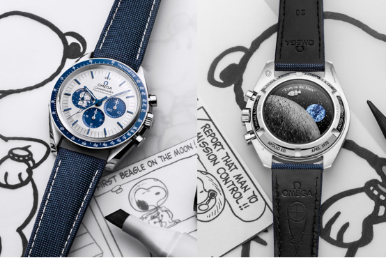 比如近兩年大家熟知的“史努比”表款,為紀念歐米茄獲得“史努比獎”而作,便屬于超霸家族里的周年腕表,2020年推出的50周年紀念款,表背有坐飛船環繞航行的史努比,非常可愛。