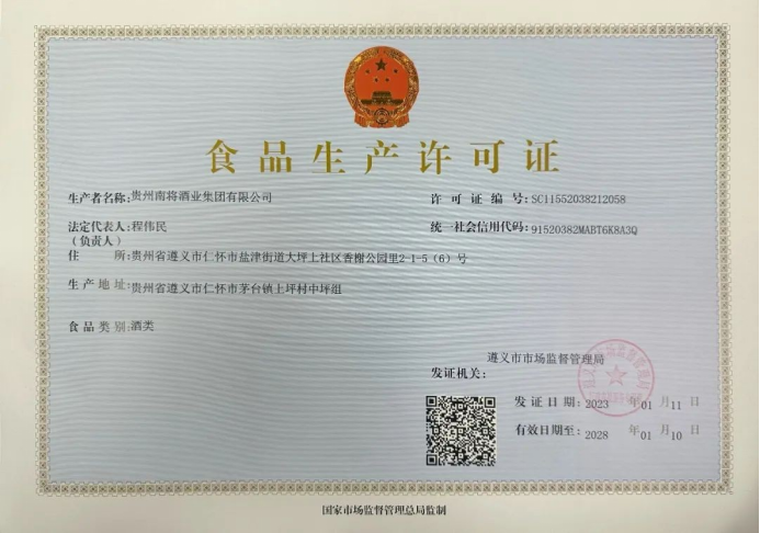 南將酒業集團生產許可證
