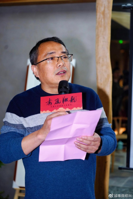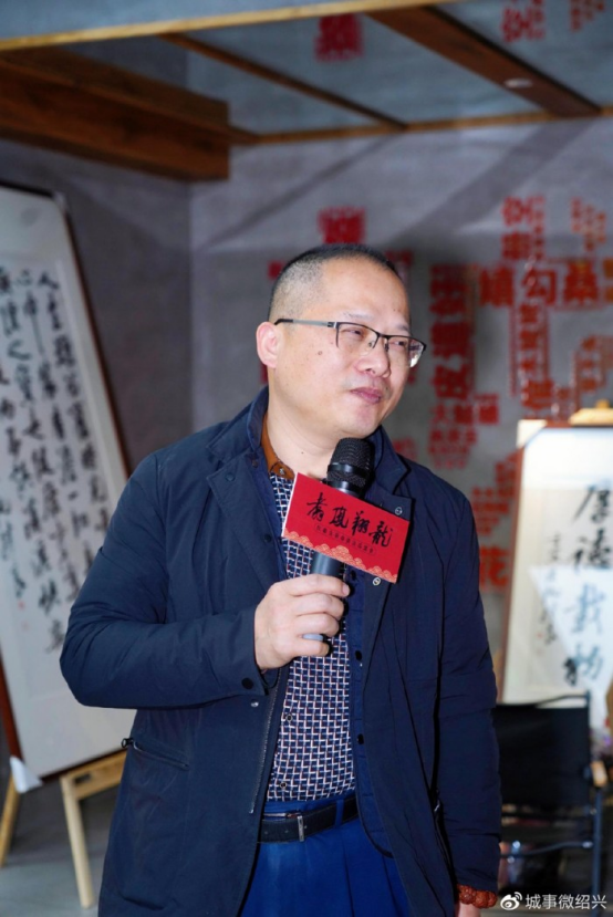 此次新春書法品鑒會得到各界人士的鼎力支持,大家歡聚一堂欣賞阮繼良先生對于書法的激情,贊賞其充滿個性的書法作品,古越龍山慢酒館內群賢畢至、熱鬧非凡。古越龍山營銷部部長、紹興黃酒文化產業發展有限公司董事長錢峰為此次品鑒會致歡迎辭,他介紹了黃酒文化與書法藝術的淵源,并回憶了和阮繼良先生結識的過程,同時他還對本次活動場地,古越龍山慢酒館,進行了詳細的介紹,這是一家充滿創意的古城文商旅融合代表地,他向到場的來賓發出邀請,歡迎各位日后來此地品酒交友,來此處享受慢生活。