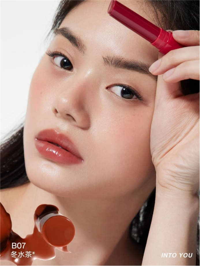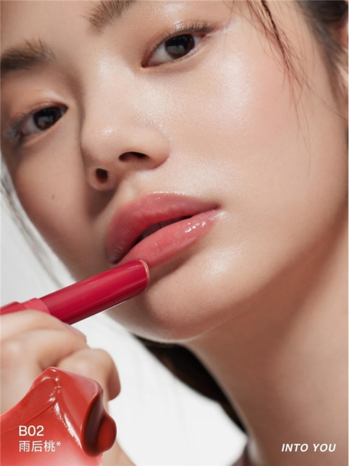 作為備受期待的新品,INTO YOU品牌對口紅質地傾力創新,打造“抵達熔點,雙態轉化”的全新質地。這是一款具有融化感的口紅,低蠟的柔軟膏體擁有不同的兩種形態配以恰當色粉,當接觸雙唇時,抵達熔點實現雙態轉換,在唇間輕柔融化。為了體現透亮清澈的光澤度,INTO YOU特別使用供應商專利技術,將液態唇蜜凝結成固體,讓產品兼具固體唇膏的質感與液體唇蜜的妝感。當膏體接觸雙唇時,身體的溫度會瞬間柔化膏體為蜜,順著雙唇的弧度均勻地附著在唇上,增顯3D光澤感。通過色粉顆粒與油脂的合理配比,使色漿貼附于唇部肌膚,帶來舒適的水潤感,在視覺上隱匿唇紋,呈現出生機勃勃的明媚活力。