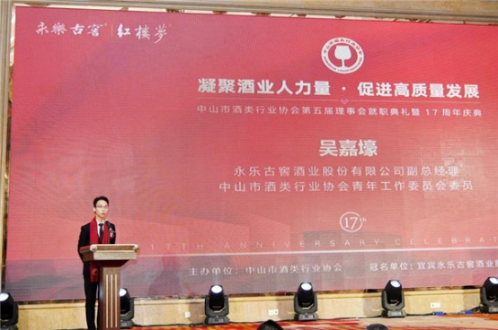 永樂(lè)古窖酒業(yè)股份有限公司副總經(jīng)理吳嘉壕作為大會(huì)官方合作伙伴、會(huì)員單位代表上臺(tái)致辭。