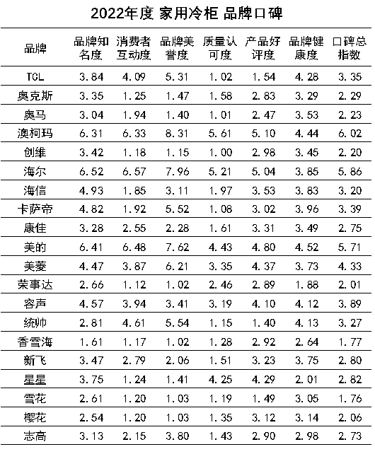 2023年5月10日是第七個中國品牌日,由工業和信息化部工業文化發展中心、中華商標協會、中國醫藥新聞信息協會、國統大數據研究實驗室等機構聯合推動的品牌口碑評價工程今日在京發布2022年度家用冷柜品牌口碑報告(以下簡稱《報告》)。