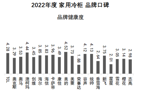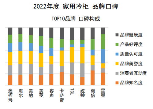 綜合來看,2022年度家用冷柜TOP10品牌的口碑構成如下圖所示: