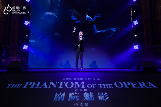 活動儀式現場,恒隆地產高級董事彭兆輝先生、副董事胡惠雅女士亦登臺祝酒,與上海文廣演藝集團總裁馬晨騁先生及青年演員畢雯珺一起,與現場來賓共慶港匯恒隆與音樂劇《劇院魅影》中文版特別聯動活動的揭幕。