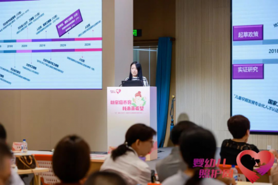 ▲國家衛生健康委婦幼健康司副司長沈海屏做《兒童早期發展與嬰幼兒養育照護》主旨報告
