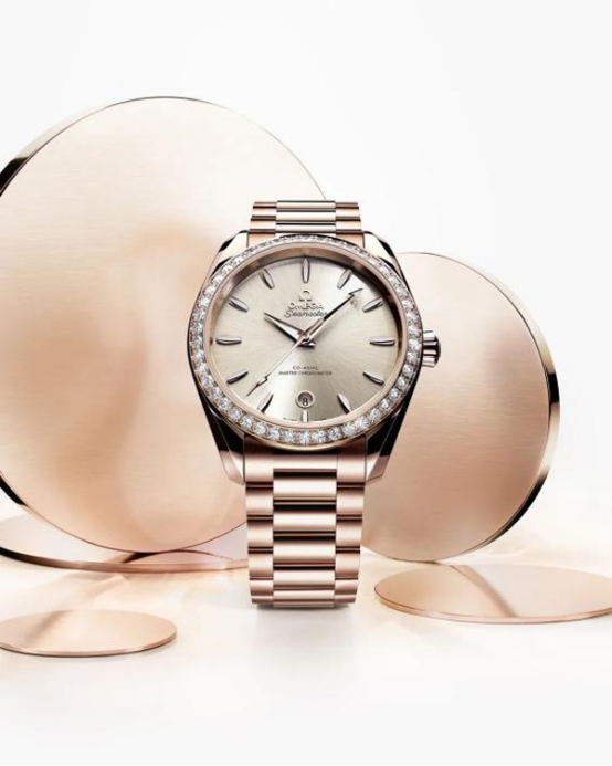 當(dāng)然,對于想要在基礎(chǔ)款式之上展露更多個(gè)人特色的女生來說,足夠特別才足夠令人喜歡。Aqua Terra Shades腕表有一款38毫米的全金腕表,采用歐米茄獨(dú)家研發(fā)的Sedna 18K金打造而成,這一獨(dú)特的紅色18K金色澤雅致,且不易褪色。表圈鑲飾46顆閃耀美鉆,共1.77克拉。砂巖色表盤經(jīng)CVD技術(shù)打造,呈現(xiàn)出太陽射線的打磨效果。
