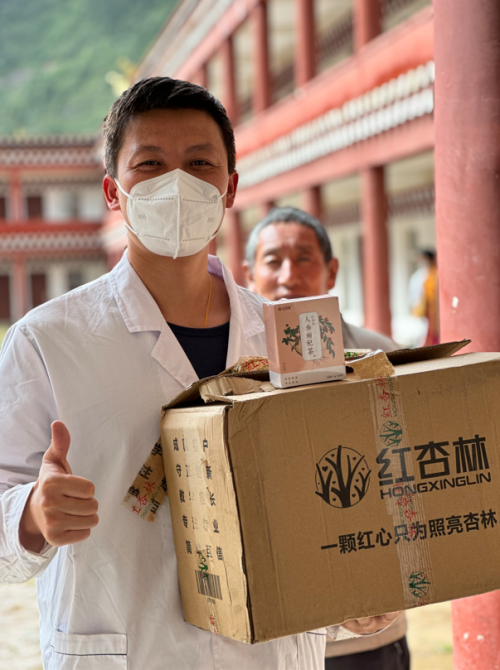 紅杏林在捐贈物資、支援義診的同時,紅杏林中醫(yī)技術(shù)研究中心總監(jiān)安瑞隨同團(tuán)隊前往藏區(qū),協(xié)助義診現(xiàn)場的服務(wù)有序開展同時,依托品牌積累的用戶資源,以直播形式呈現(xiàn)義診真實場景,讓更多人看見藏區(qū)的實地情況,并發(fā)起號召,希望更多有能力、有資源的同道人也能夠積極參與到公益中來。