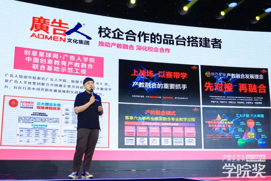 創(chuàng)意星球董事、副總經(jīng)理李春生先生題為《做校企合作的提燈人和馬車夫》的演講。李春生先生詳細(xì)說明廣告人文化集團(tuán)的歷程、內(nèi)容生態(tài)圈與平臺戰(zhàn)略布局,表示:“廣告人文化集團(tuán)發(fā)展至今,積累了深厚的社會資源。作為熱愛教育事業(yè)的追夢人,在各高校紛紛積極探索實(shí)踐教學(xué)、教育改革之路時,廣告人文化集團(tuán)決心盡自己所能幫助高校在實(shí)踐教學(xué)的道路上走得更快。”