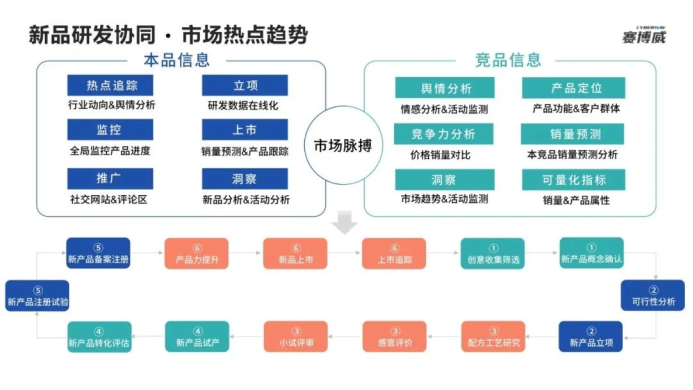 賽博威新品研發(fā)協(xié)同平臺目前已經(jīng)助力眾多頭部快消企業(yè)在新品研發(fā)過程中,洞察市場趨勢,找準(zhǔn)新品方向,規(guī)范化新品研發(fā)流程,提高新品研發(fā)效率,實施新品上市追蹤,把握市場脈搏,搶占市場份額。