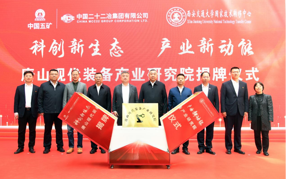 4月18日上午,中國二十二冶集團與西安交通大學共同聯合創建的唐山現代裝備產業研究院揭牌儀式在中國二十二冶中冶重工唐山公司舉行。唐山市工業和信息化局副局長賀川、高新區管委會副主任武昌明,西安交通大學國家技術轉移中心主任王文,中國二十二冶集團有限公司副總經理韓冰出席活動,賀川、武昌明致賀詞,賀川、武昌明、王文、韓冰為唐山現代裝備產業研究院揭牌。中國二十二冶集團有限公司副總工程師慈國強主持會議。