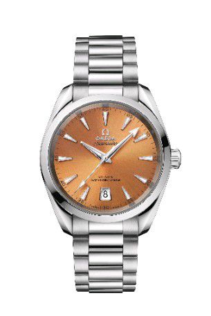 這款海馬系列Aqua Terra Shades腕表搭配橘黃色表盤,表盤采用黃銅制成,由中央向四周呈現(xiàn)出太陽射線的打磨效果,搭配鍍銠指針和小時刻度,并覆以白色Super-LumiNova夜光涂層。表殼采用精鋼材質(zhì)打造,經(jīng)拋光處理,搭配經(jīng)過升級設計的表鏈,精美的圓弧形鏈節(jié)令腕表的整體外觀更為和諧。腕表內(nèi)部搭載歐米茄8800至臻天文臺機芯,通過由瑞士聯(lián)邦計量研究院 (METAS) 核準的嚴苛測試,其精準度、防磁性和整體性能均達到行業(yè)的更高標準。