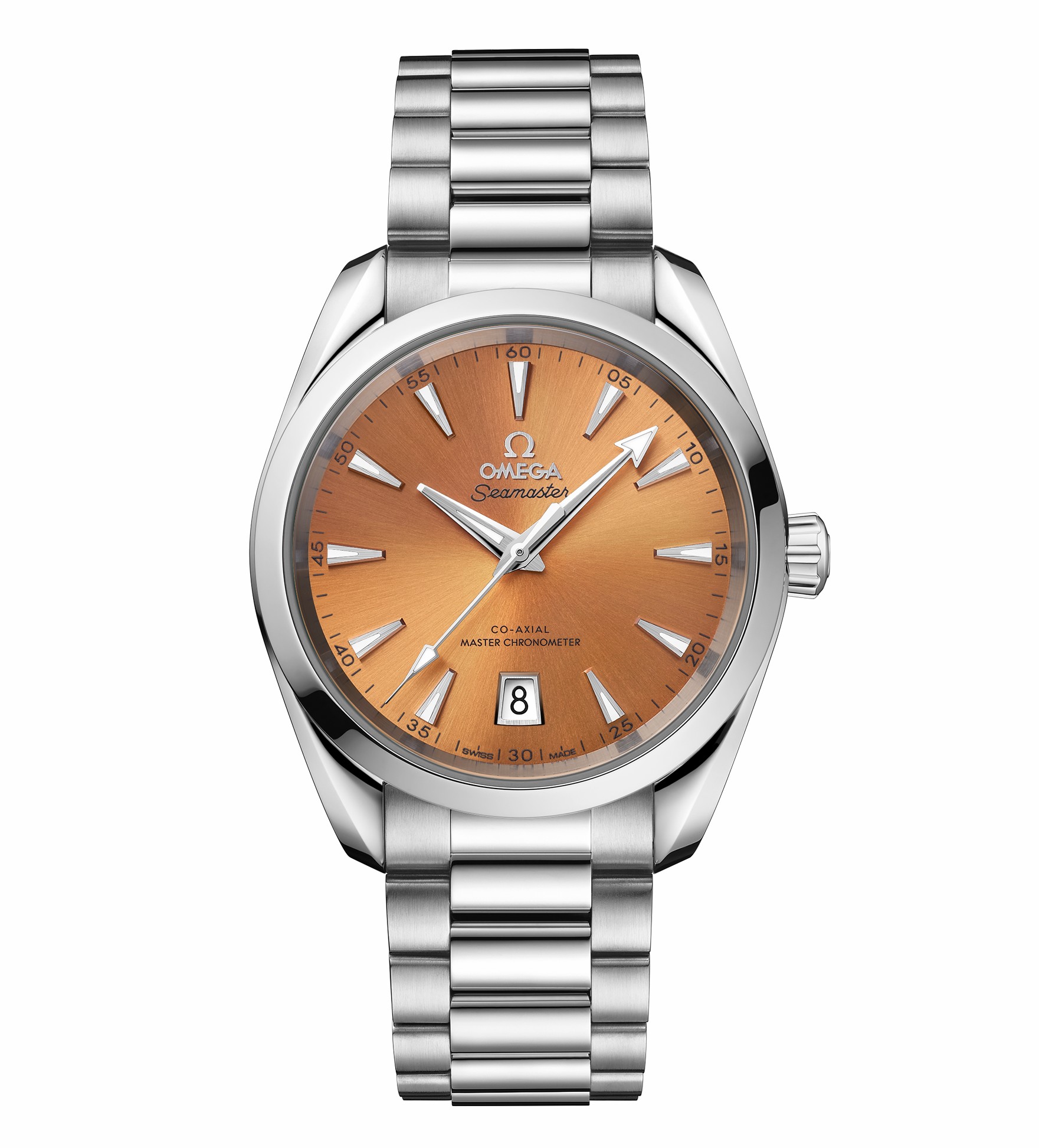海馬系列 Aqua Terra 150米38毫米至臻天文臺表采用對稱設計,表殼和表冠均以拋光精鋼材質打造,表背采用波紋邊緣設計。6點位設有日歷窗,鍍銠指針和小時刻度均覆有白色 Super-LumiNova 夜光涂層。不銹鋼表鏈采用精美的圓弧形鏈節,經拋光和拉絲處理。內部搭載歐米茄8800至臻天文臺機芯,通過由瑞士聯邦計量研究院(METAS)核準的至臻天文臺認證,其精準度、防磁性和整體性能均達到行業的更高標準。其表盤由黃銅制成,經過漆面處理,由中央向四周呈現出太陽射線的打磨效果。各種色彩中,橘黃色古典氣息十足,雅致而沉穩。砂巖色樸實無華,屬于低調而休閑的實力派。