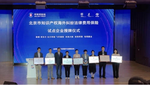 5月30日,2023中關村論壇“全球知識產權保護與創新論壇”在中關村國家自主創新示范區展示中心舉辦。作為知識產權首善之區最新創新實踐成果,北京市知識產權海外糾紛法律費用保險(簡稱“海外險”)亮相分論壇,聯想、飛天誠信、未嵐大陸等7家2022年北京市知識產權海外糾紛法律費用保險試點企業獲得授牌。