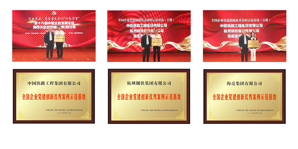 為了更加深入的推廣優秀案例企業的黨建經驗,發揮榜樣的示范作用,促進優秀案例企業之間相互學習、考察、交流,共同推動企業黨建創新發展,全國企業黨建創新優秀案例征集活動組委會在本屆200家優秀案例企業中,開展了“全國企業黨建創新優秀案例示范基地”征集和申報工作。在各企業黨委申報的基礎上經過審查和考核,決定首批授予中國鐵路工程集團有限公司、杭州鋼鐵集團有限公司、海亮集團有限公司“全國企業黨建創新優秀案例示范基地”稱號。